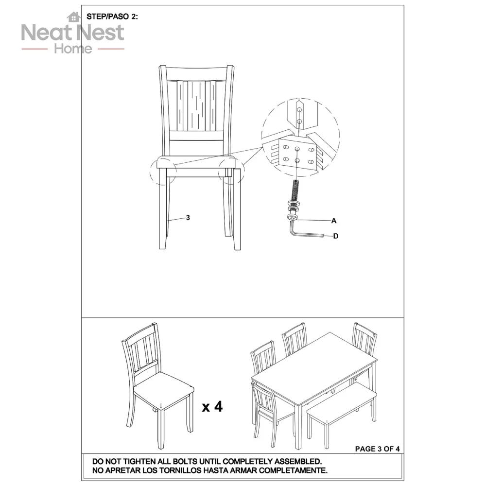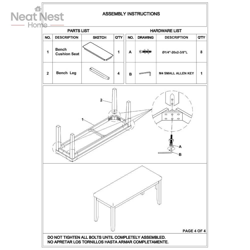 - Includes Table, Bench and 4 Chairs