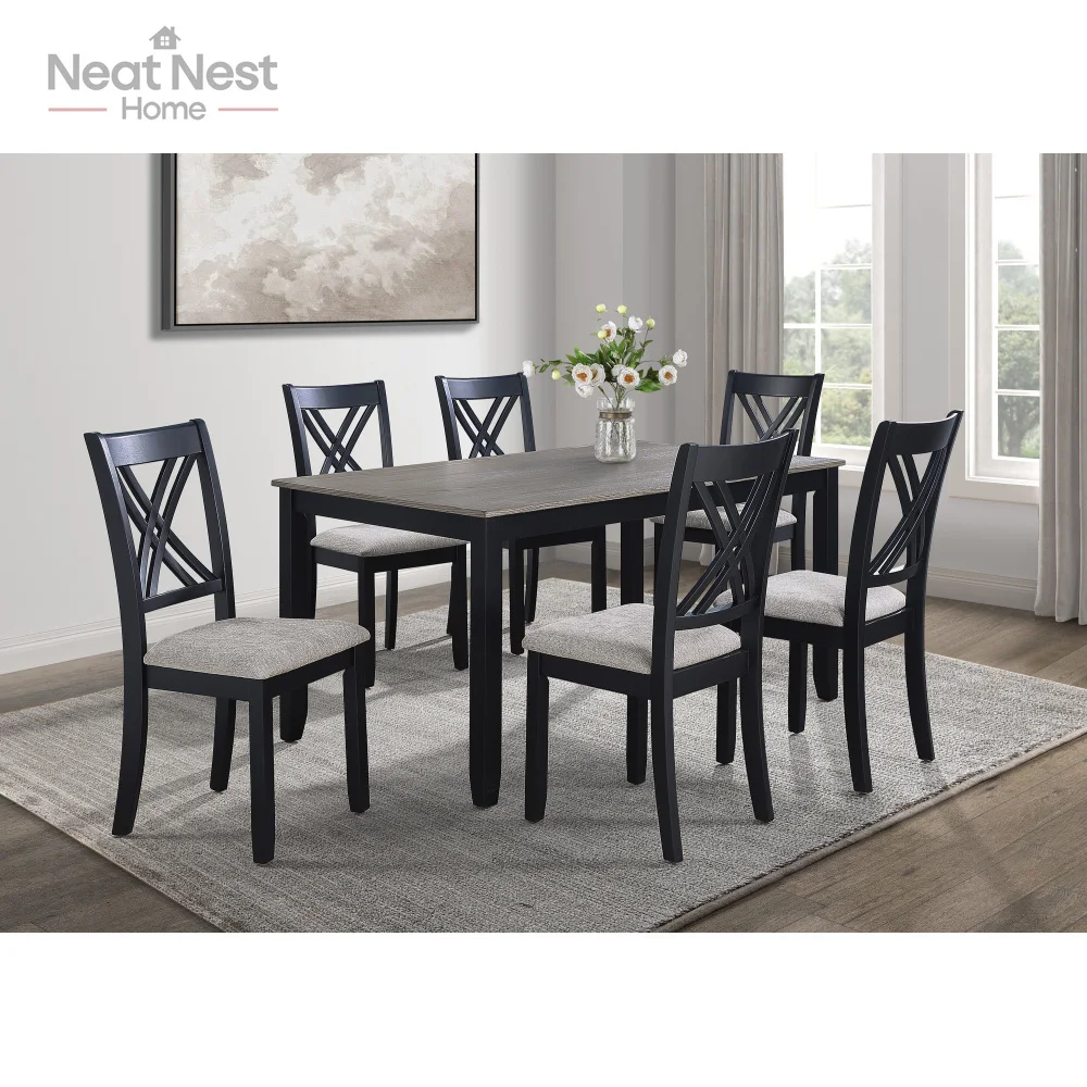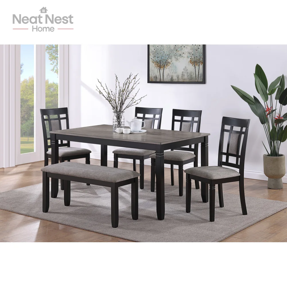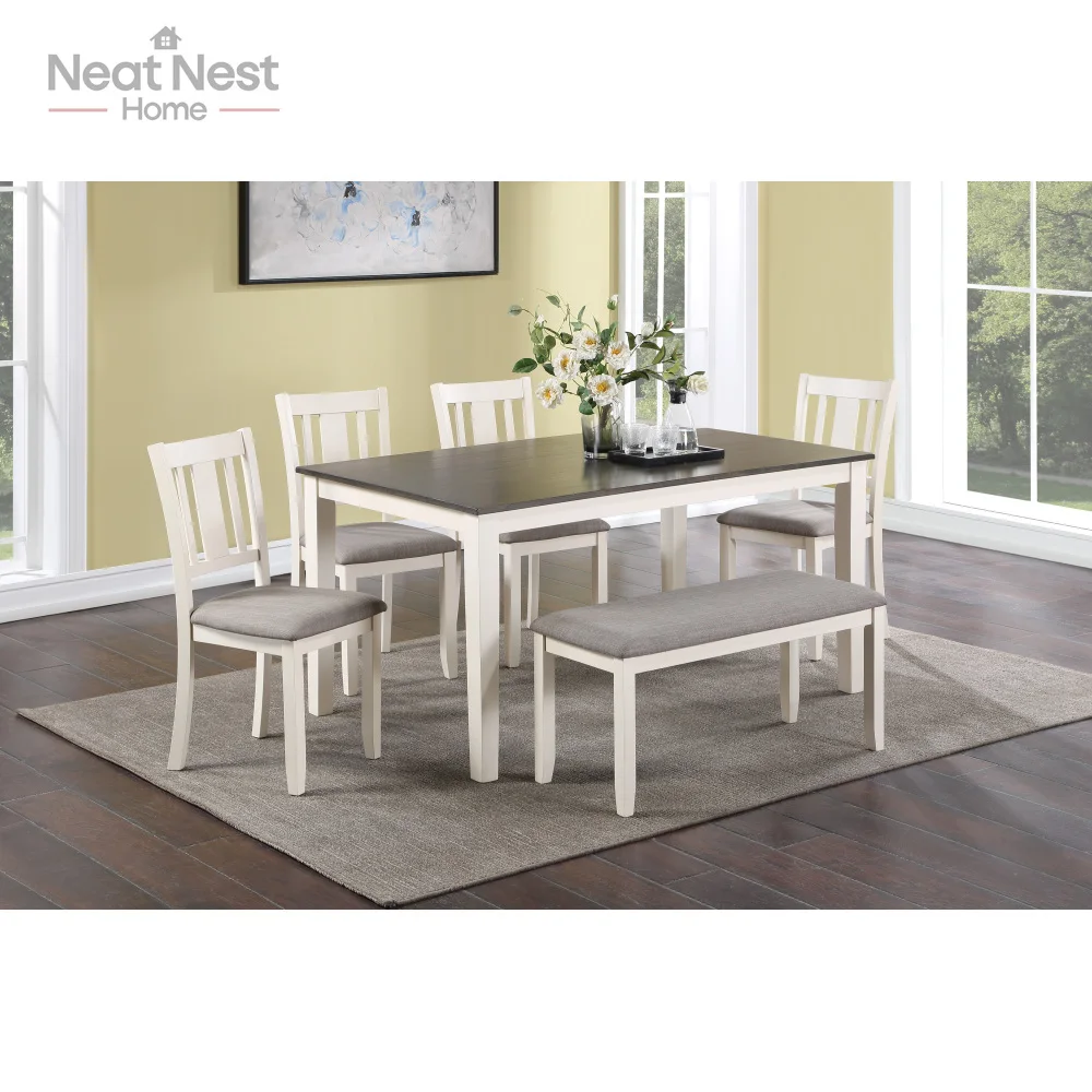 Single Box Product Main Color:Antique White+Gray Main Material:Wood Product Style:Transitional Use Case:Dining Room Seating Capacity:Seats 6 Table Shape:Rectangular Table Lengths:60 inches Table Top Material:Wood Chair Material:Wood Table Frame Material:Wood Table Base Types:4 Leg Dining Set Configuration:Dining Table with Chair and Bench Dining Sets Features:Fixed Table