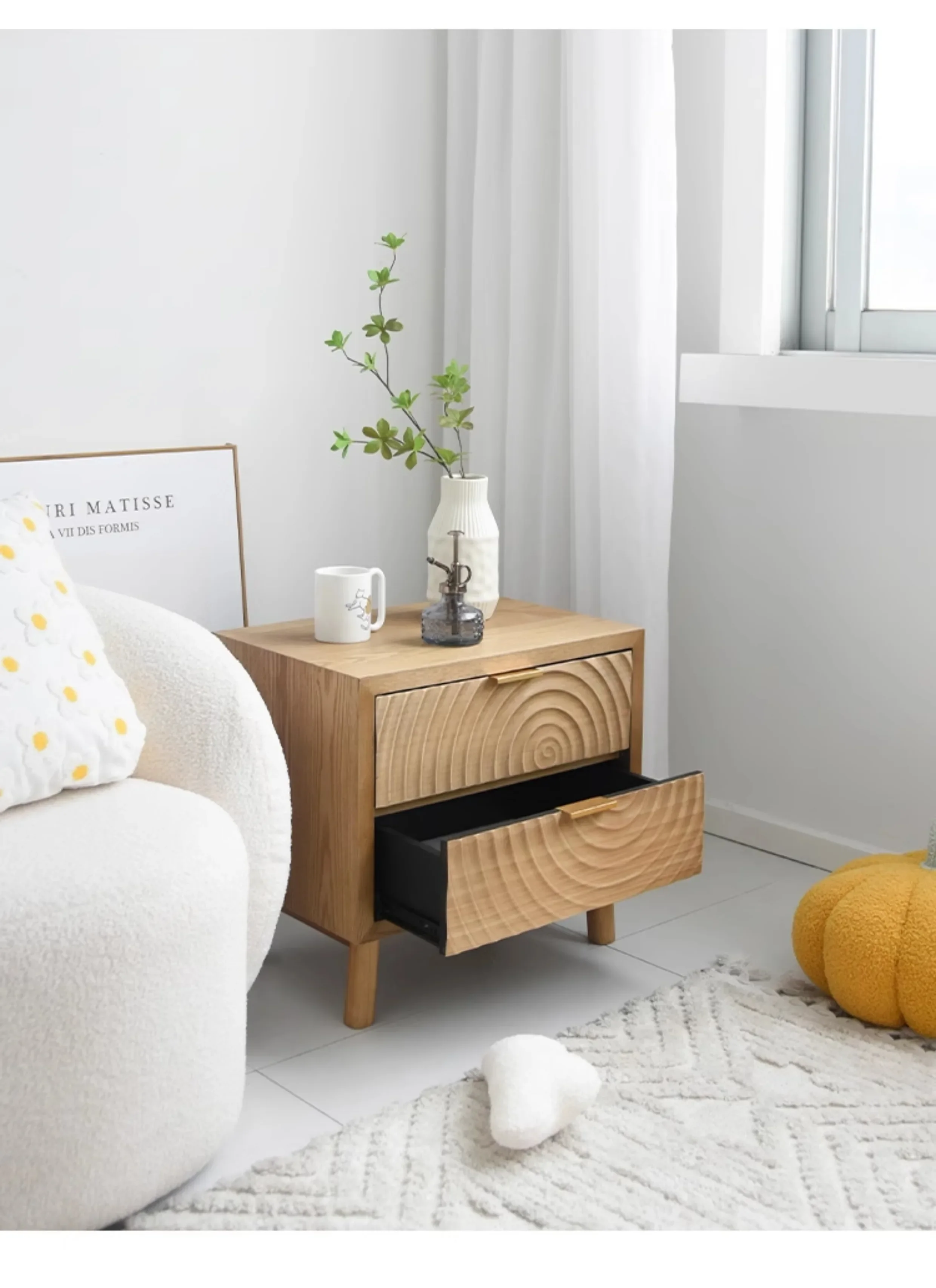 - This nightstand is a harmonious blend of the simplicity and functionality of Nordic design with the sleek aesthetics of modern style. The Nordic – inspired clean lines and natural – toned color palette create a sense of warmth and tranquility. The modern elements, such as the understated form and contemporary finishes, add a touch of sophistication. Whether your bedroom decor is modern minimalist or has a classic – modern charm, this nightstand will fit in seamlessly, serving as both a practical storage solution and a stylish focal point.