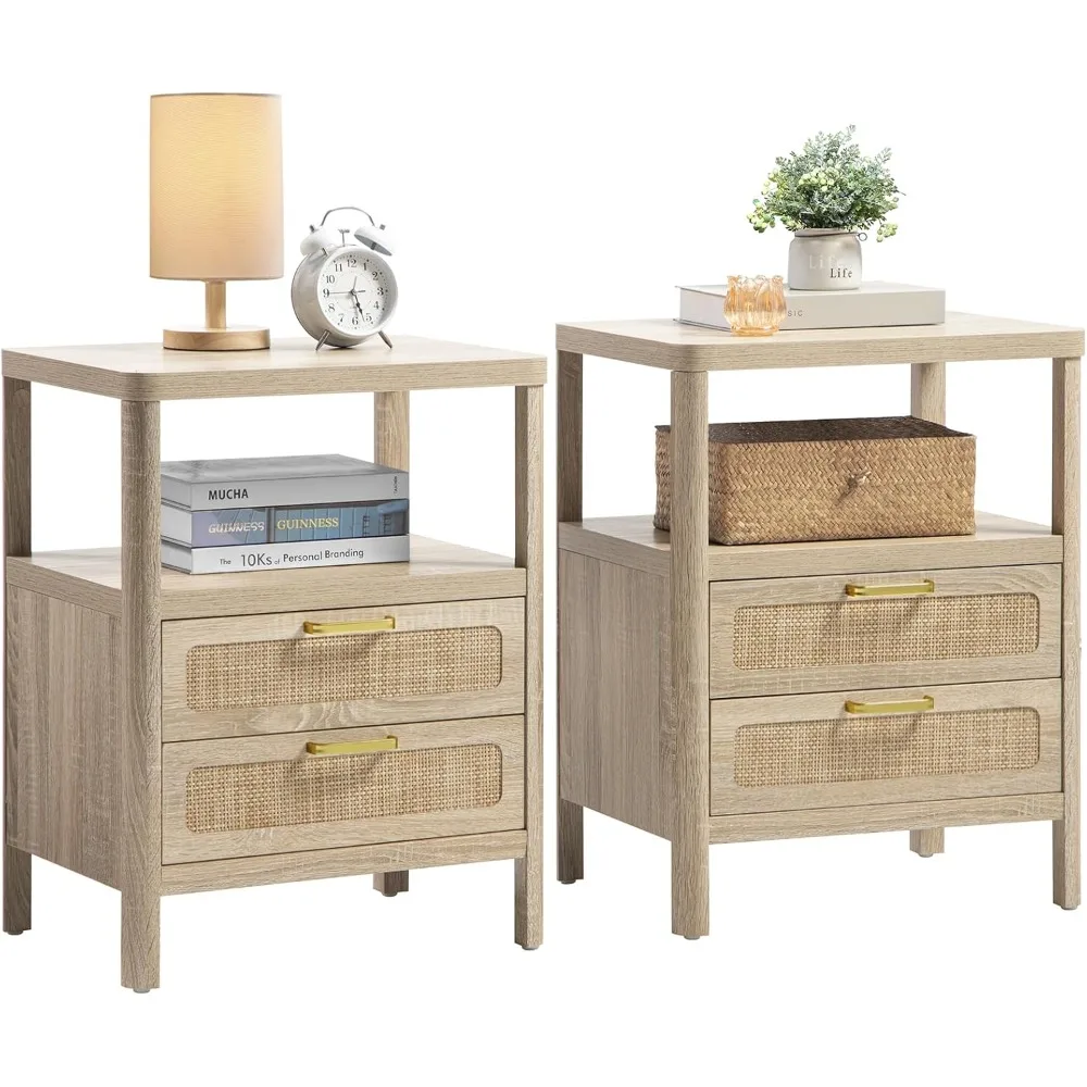 - 🛌Delicate & Cute Design: The entire night stand adopts a curved design, rounded and cute, which is a big upgrade to the appearance of the bedside table, With PE rattan on the drawer, not only natural and charming but also durable and easy to clean, ideal for a natural airy bedroom feel by day and the warm tones will make it cozy by night